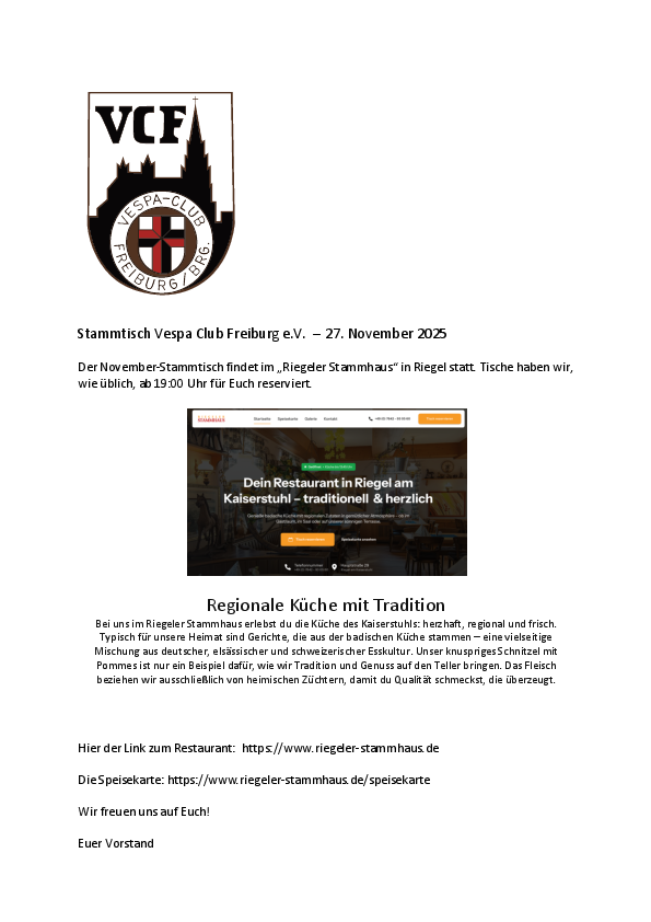 - 09. Januar 2026 Jahreshauptversammlung des VespaClub Freiburg e.V.