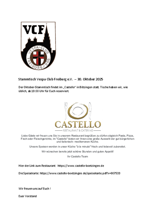 Eine Bitte an Nichtmitglieder / Interessenten - bitte meldet Euch via Email mit Vornamen/Namen zum Stammtisch an - so können wir ausreichend Plätze reservieren --> info(at)vespa-club-freiburg(dot)de