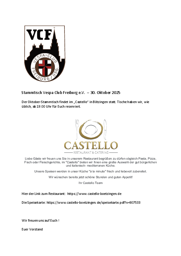 Hier ein Überblick über die Events 2025 von und mit dem Vespa-Club-Freiburg e.V. :